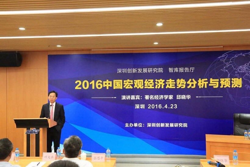 【邱晓华】谢谢大家牺牲周末休息时间到这边来陪我一起就当前的中国经济形势作一个交流。非常荣幸来到深圳创新发展研究院这个权威的机构里面给大家作报告。