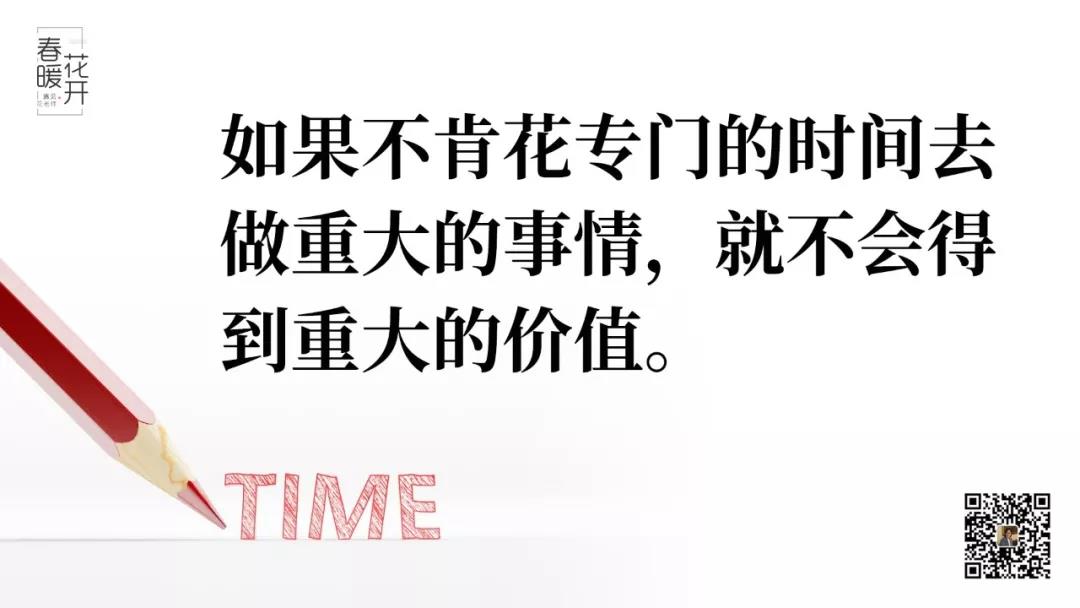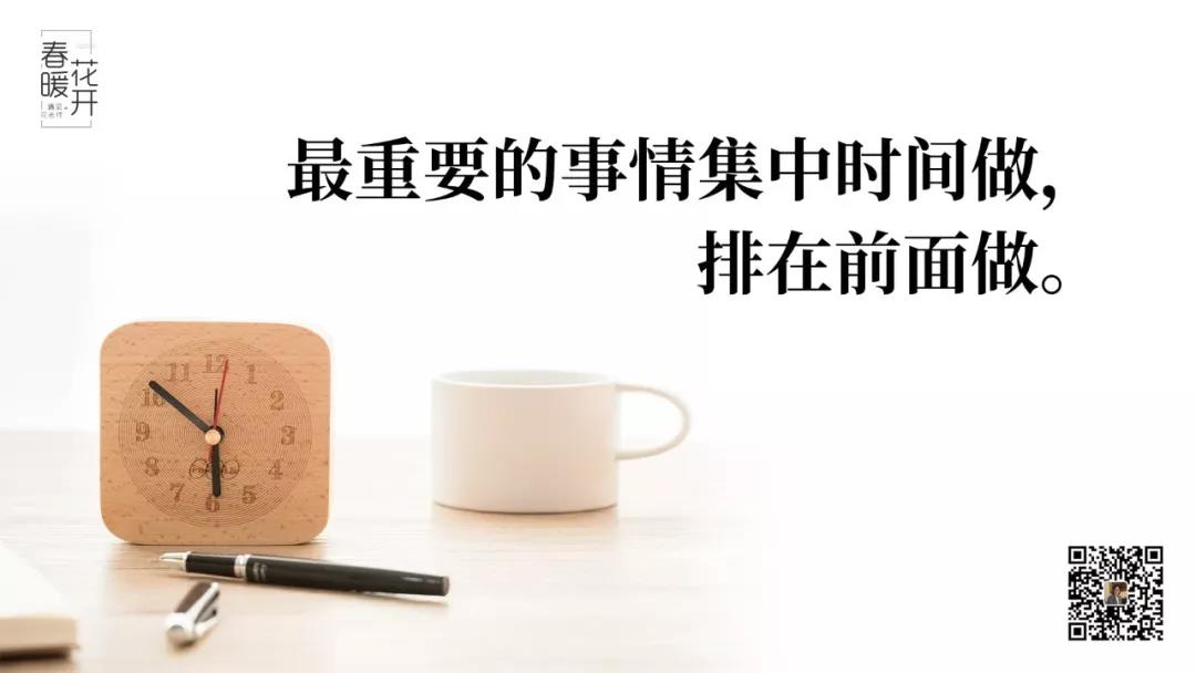 对于你认为极其重要的事情,你更要辟出专门的时间,来进行这个重大事情的工作。其实很多人在能力和基本条件上并没有太大的区别,但是一部分人成功而另外一部分人不成功,就是因为不成功的这部分人不能够为重大的事情开辟出专门的时间,不能够集中精力为这件事情全神贯注,但是如果不肯花专门的时间去做重大的事情,就不会得到重大的价值,所以一定要在一个时间段内去做一件事情,当你确定在这个时间做什么事情的时候,你就马上去做,结果就会很好。