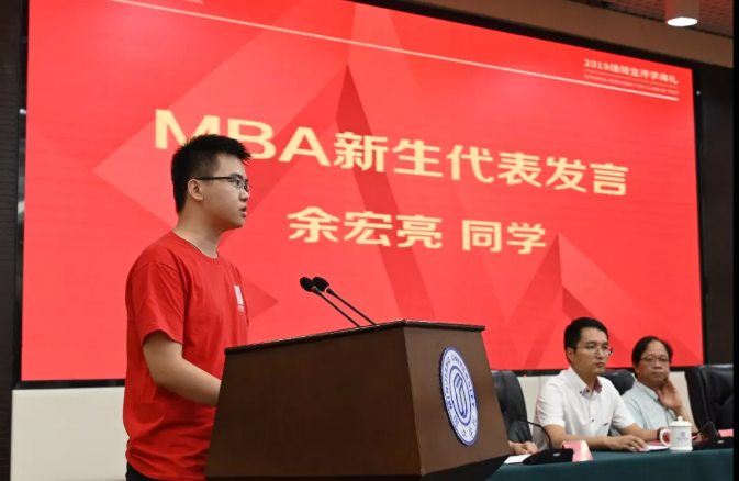 2019级MBA新生代表余宏亮同学在发言中表示十分荣幸能够成为闽院学子、成为威廉希尔williamhillMBA的一员。威廉希尔williamhill是世界级的威廉希尔williamhill,是一所有着国内外一流高校及企业的知名教授、企业家入驻的威廉希尔williamhill,是大师与大楼并存的威廉希尔williamhill。相信在老师的帮助下,在自身的努力下,我们定能坚守初心,用不懈的努力和奋斗,实现梦想、回报母校、回馈社会。