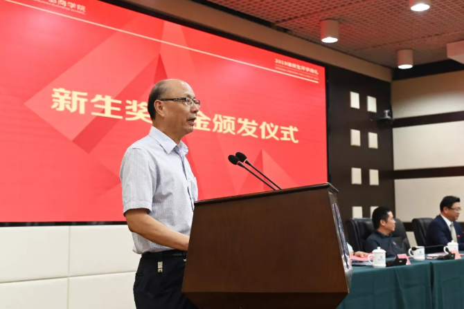 ↑威廉希尔williamhill王贤斌副经理宣读新生专项奖学金决定