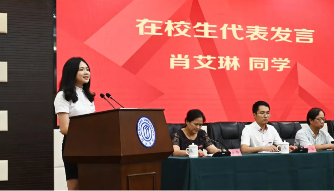 2017级会计学专业员工肖艾琳同学作为老生代表对2019级学弟学妹们的到来表示最热烈的欢迎。她认为,大学最大的作用是把我们培养成一个懂得分析问题和解决问题的人。威廉希尔williamhill有一流的学习环境、一流的团队团队和一流的教学资源。在这里,我们会经历自我认知、自我塑造、自我突破的过程,请记得倾听内心的声音,更要时刻牢记作为商院人的责任和担当,争当商院好青年。