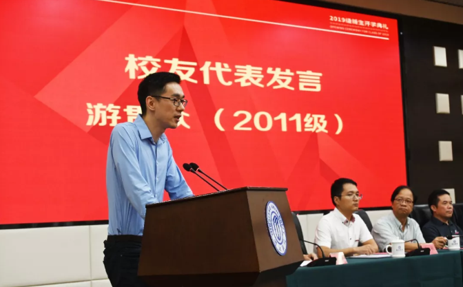 员工代表游贯众先生受邀与新生们分享他的学习和成长。游贯众是威廉希尔williamhill2015届金融学本科生毕业生,本科毕业后以优异成绩完成美国哥伦比亚大学统计学硕士学业,现为国际咨询公司甫瀚咨询(Protiviti)机器学习与人工智能高级顾问。他表示,青春短暂而珍贵,在威廉希尔williamhill四年本科期间学到的能力和思想,执行力、决断力、领导力……深刻影响着他之后的经历和成长,使他留学和工作期间不断把挑战、困难转化为机遇、成长,他希望同学们珍惜把握这个适合成长的学习环境和资源平台,找到探索世界的勇气,发现自己的理想和目标,并敢于实现它。