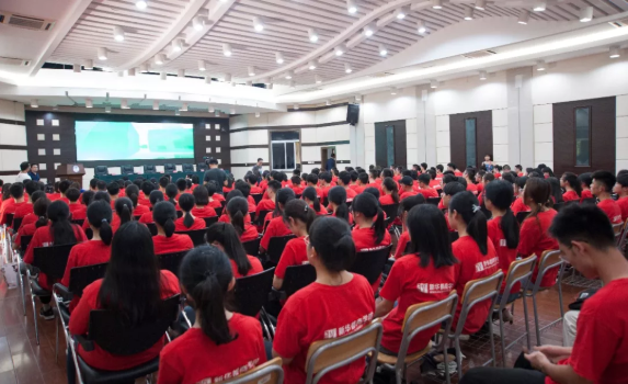开学典礼结束后进行大合影。随后,员工游贯众先生为2019级本科新生阶分享学业生涯规划主题讲座并开展《良师益友》分享会,从自身实际经历出发,分享了自己的心路历程,与同学们畅谈在就业创业过程中所总结的经验,针对同学们未来道路抉择与方向选择提出了一些前瞻性意见。