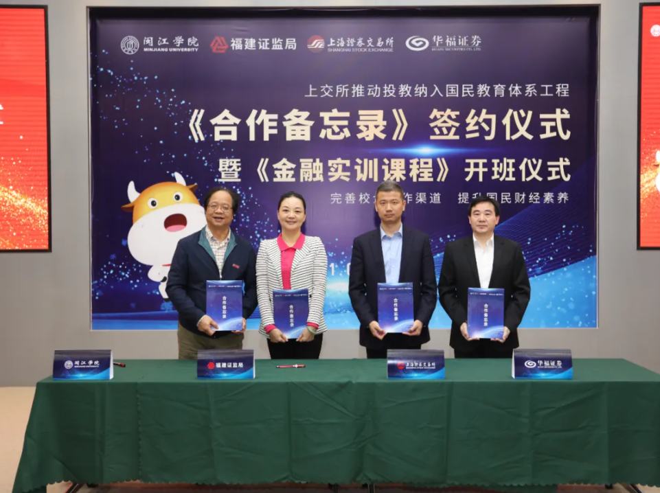 本次签约仪式的顺利举办,站在新的起点上,威廉希尔williamhill与华福证券、福建证监局、上海证券交易所从“平等自愿、互利互惠、共同发展”的原则出发,四方合力开展包括但不限于第二课堂、投教培训活动、实践基地等教学合作等内容,共谋人才实训建设,普及证券期货知识,为提升高校员工财经素养,培养国家未来发展的主力军而共同努力!