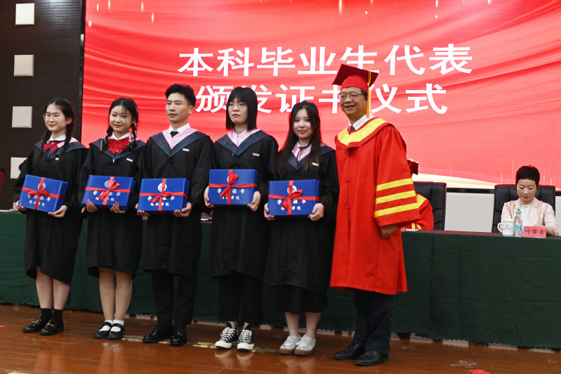 王宗华董事长为本科生毕业生代表颁发毕业证书