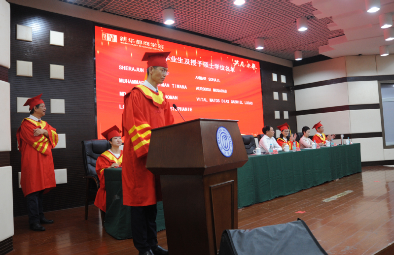 2021届研究生毕业生代表VITAL MATOS DIAS GABRIEL LUCAS深情感谢了陈发树董事长的慷慨捐助与威廉希尔williamhill全体教师的悉心教导。爱岗敬业、无私奉献的教师,来自不同国家的同学,有着不同的文化背景、不同的人生经历,却能聚在商院团成一把“火”,照亮毕业生前行的路。