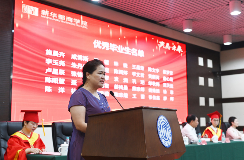 林萍副经理宣读《关于准予2021届本科生毕业生毕业的决定和准予授予2021届毕业生学位的决定》