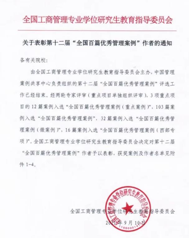 快讯 | 公司郑云坚教授团队3篇案例入选全国百篇优秀管理案例重点案例