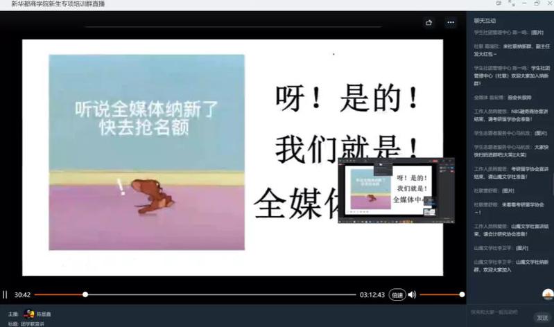 虽说此次纳新宣讲会是以线上宣讲的形式召开,但同学们的热情丝毫不受影响。中场休息时间,艺术中心提前录制好的节目视频让同学们享受了一场视觉与听觉的盛宴,也将线上宣讲会的气氛推到顶峰。各个部门的宣讲人都激情投入、以情动人,讲述了专属于各自部门的魅力与闪光点,并用带着一丝幽默的语气向新生们发出邀约。