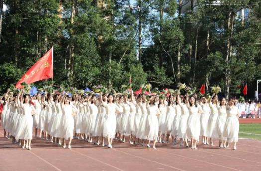 鲜花队是此次运动会开幕式的“门面”,朝气蓬勃的商院女生们身着大气的白色纱裙,手持鲜花,笔直地站在距离主席台最近的赛道旁。她们宛若仙子一般,在如森林秘境一般美丽的闽院中,为即将开始的运动会送去祝福。