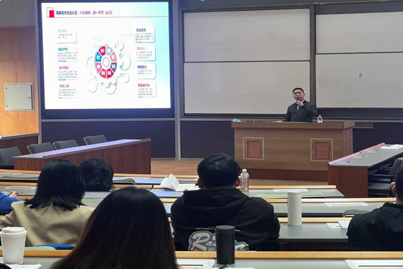 讲座伊始,杨斌总经理向同学们初步介绍“什么是高新技术产业”。高新技术产业是以高新技术为基础,从事一种或多种高新技术及其产品的研究、开发、生产和技术服务的企业集合,主要包括信息技术、生物技术、新材料技术三大领域。