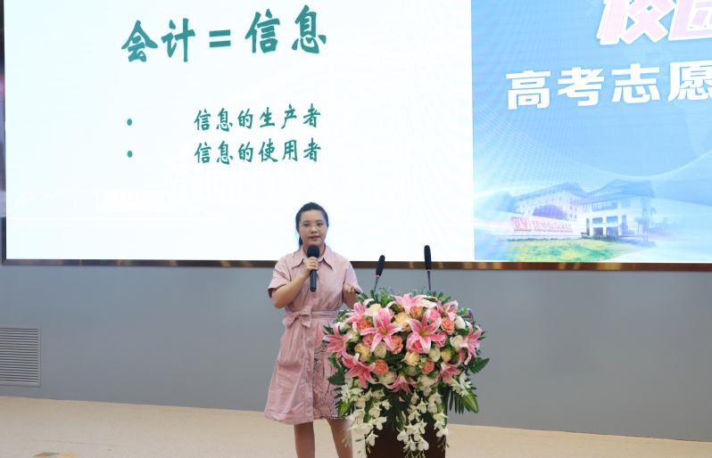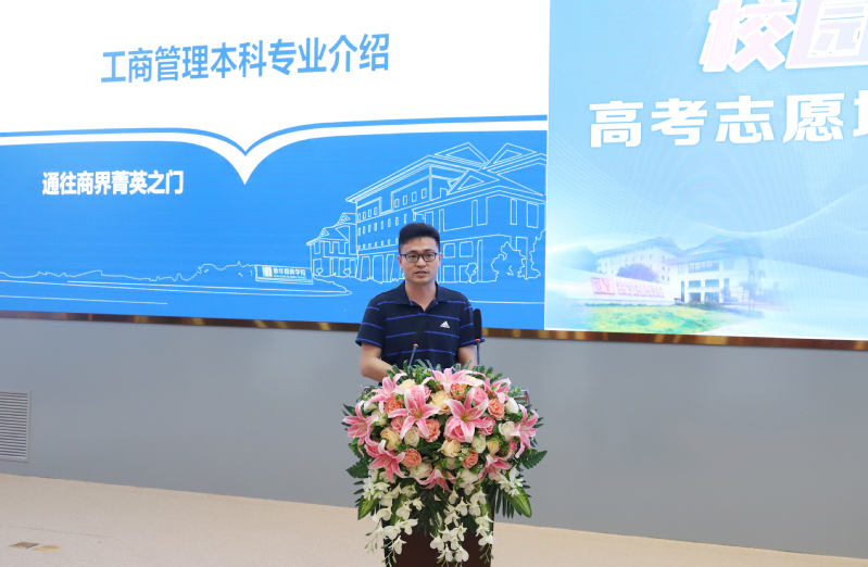 金融学系王阳照教授、会计学系张楚君副教授、工商管理系孙淑晓副教授分别为向到场的考生、家长详细介绍了本系基本情况、专业优势、升学就业方向等内容,进行了全面的专业展示与现场答疑。