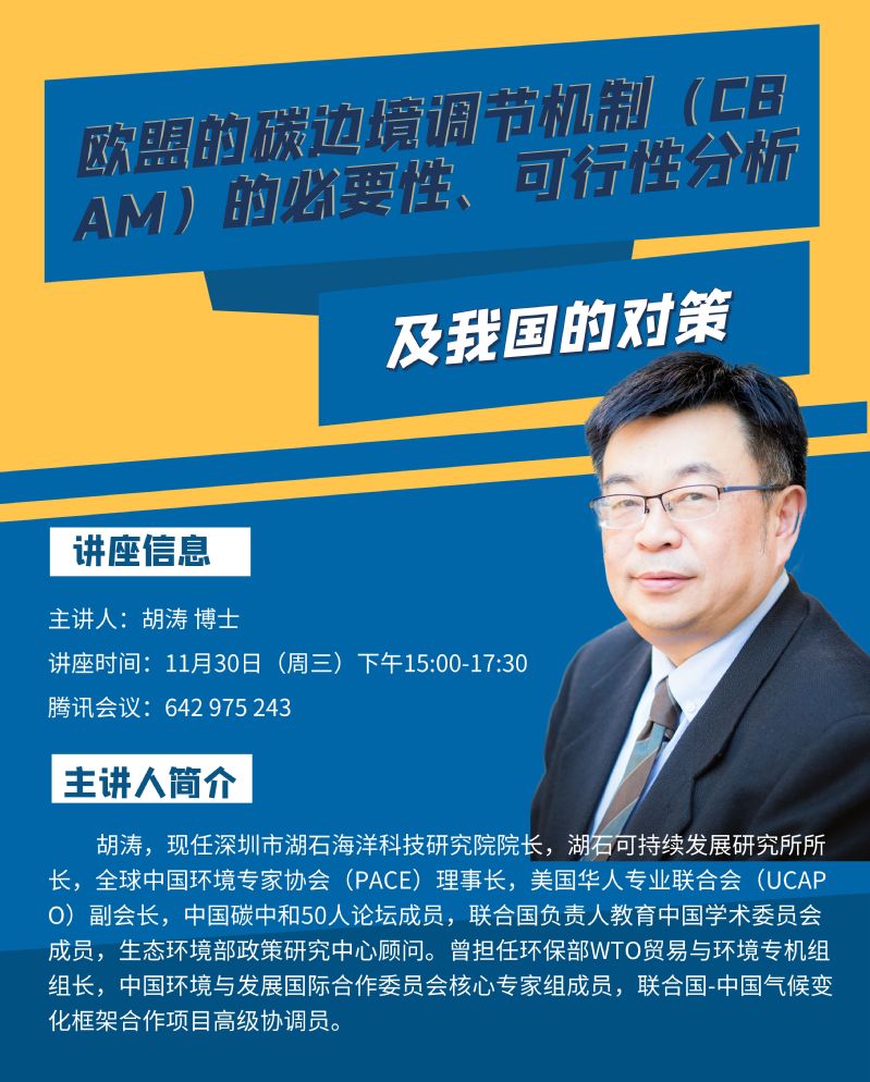 【讲座预告】11月30日15点 欧盟的碳边境调节机制(CBAM)的必要性、可行性分析及我国的对策