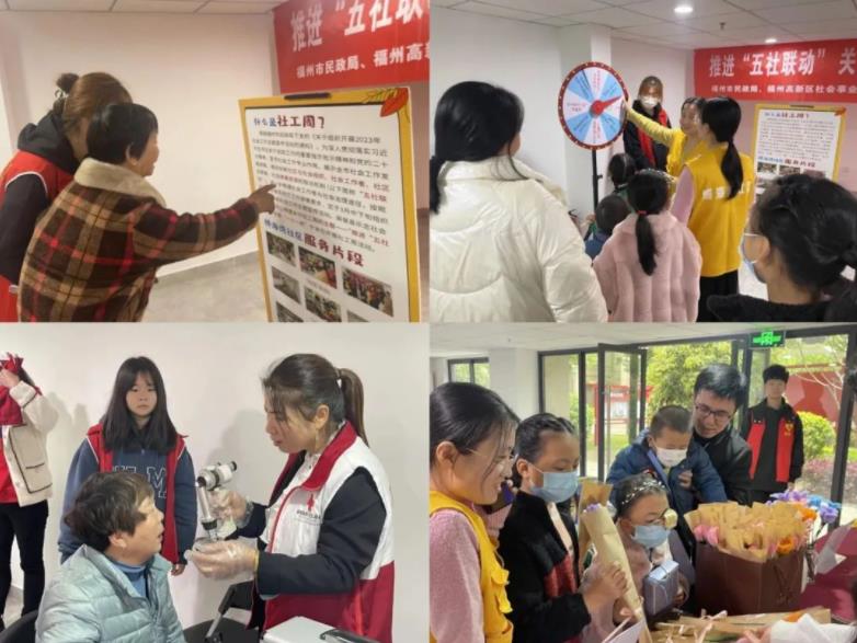 雷锋月遇见社工周。在第17个国际社工日暨2023年全国社会工作主题宣传活动启动日到来之际,为弘扬雷锋精神,宣传社会工作,志愿者服务中心与闽侯乐志社工中心联动,以雷锋月和国际社工日为契机举办关爱“一小一老”主题社工周活动。2023年3月25日,志愿者们前往闽侯县博海湾社区参与活动筹备、花朵义卖、社工宣传、金融防诈、老幼服务等社工周活动。活动过程中志愿者们与社工们分工协作,用认真的态度、积极的行动践行青年担当。