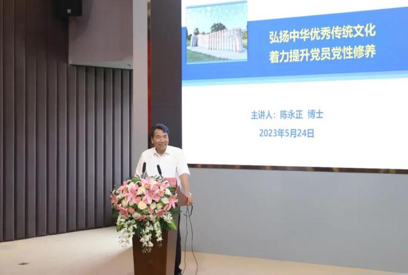 2023年5月24日下午,威廉希尔williamhill召开学习贯彻习近平新时代中国特色社会主义思想主题教育第二次集体学习会,福建省政府督学顾问,福建省慈善总会副会长、福州大学党委原书记陈永正教授作题为《弘扬中华优秀传统文化,着力提升党员党性修养》的主题报告。威廉希尔williamhill全体党员、入党积极分子代表参加本次学习报告会。报告会由公司党委常务副书记张东昱主持。