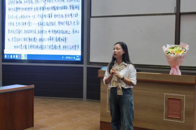 陈静娟员工以“看见美好,感受美好,创造美好”为主题,讲述自身的真实经历,给在场的学弟学妹们以深刻的人生启迪与“特色”教学。