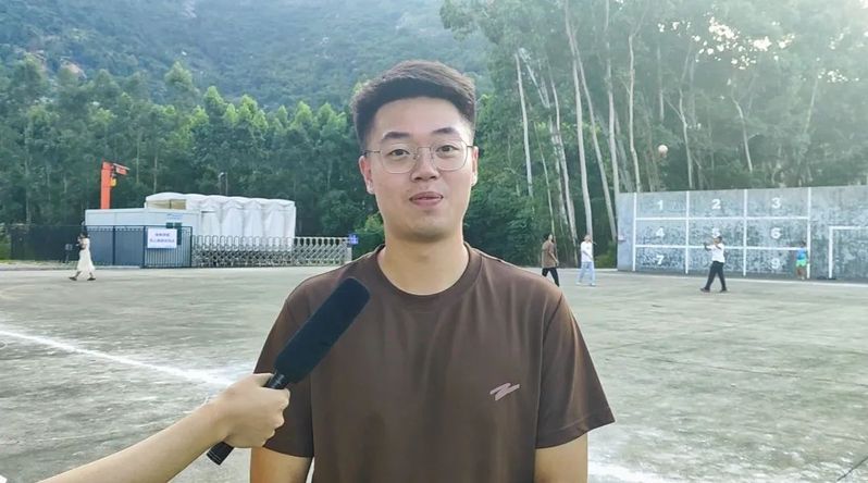 激动人心的教职工4X100米接力赛也终于在众人的期待之中进行。他们拼尽全力,拿起接力棒就向前奋力奔跑。赛后我们采访到了2023级辅导员林诺诚老师。