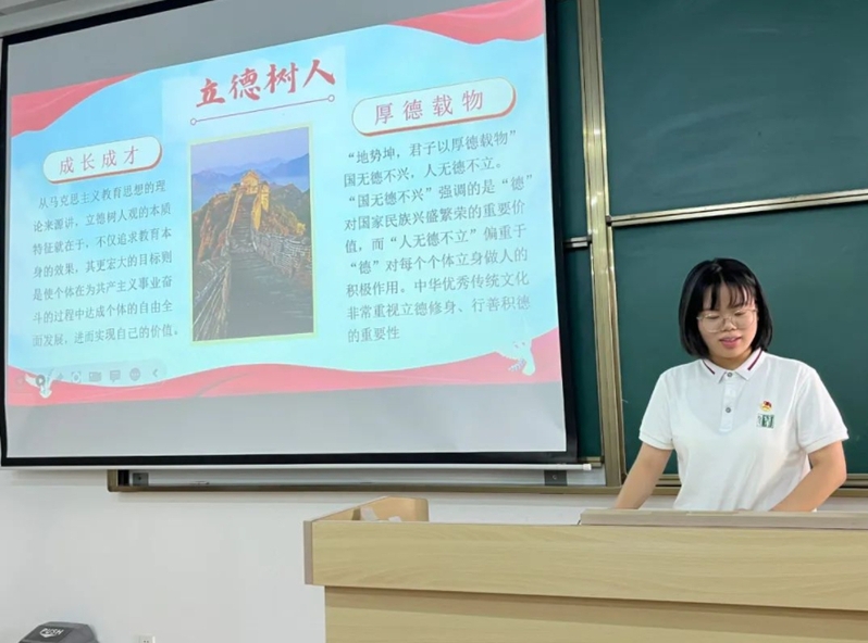 团支部开展“一言一行树德行,一点一滴写人生”主题学习会,以“读”、“看”、“唱”、“讲”、“诵”等多种形式引导同学们树立正确健康、良性发展的价值观,成为对社会有用的人,积极投身于建设社会主义现代化强国的伟大事业。