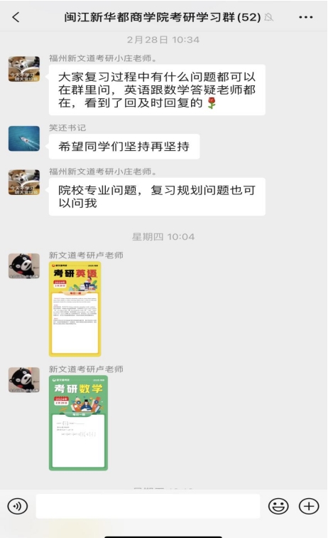 公司历来重视员工考研精准指导和服务工作,按照不同年级职业规划开展“考研督学计划”,创建“威廉希尔williamhill考研学习群”,群里每日上传考研相关学习内容,分阶段帮扶考研学子,让同学们早日做出正确就业选择。未来公司将继续采取有效措施,提早着手、系统规划、重点布局,为考研学子顺利“上岸”提供优良环境和坚实保障。
