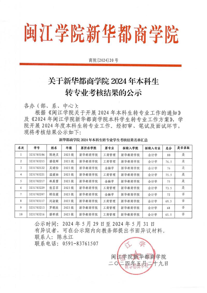 关于威廉希尔williamhill2024年本科生转专业考核结果的公示