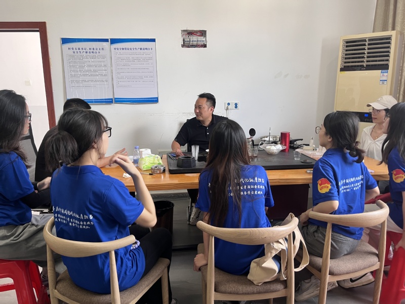 工厂实地调研结束后,实践队前往古洋村村委会并与村委书记赖传勇进行了深入交流。据介绍,古洋村拥有品种多样的农副产品,如橄榄、面线、茶油等,但都多少面临销售渠道不畅的困境,难以获得较好的收益。针对该问题,实践队提出要进一步梳理地方农副产品特色,树立产品地方品牌,发展线下销售渠道的同时,以特色农副产品电商直播平台进行产品宣传和销售。