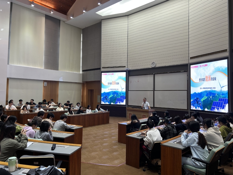 张东昱常务副书记以《学习贯彻党的二十届三中全会精神,更好端牢能源的饭碗》为题,围绕“七个聚焦”全会主题,重点对“聚焦建设美丽中国”进行解读,引导员工全面准确理解进一步全面深化生态文明体制改革的重大举措和“中国式现代化是人与自然和谐共生的现代化”的深刻内涵。他希望同学们从国家发展和安全的角度出发,强化节约意识,倡导简约绿色低碳的生活方式,为能源领域的高质量发展以及经济社会的绿色低碳转型、推进中国式现代化贡献青春力量。