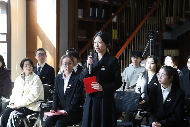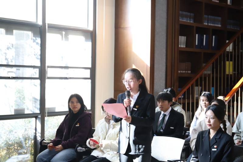 心得分享环节,储英班学员祁世蕊、“红色经典读书社”成员章冰冰、魏荣婷、张师哲等四位同学依次发言。他们学习了谷文昌、廖俊波同志的优秀品格,并将其巧妙地运用到个人的学习、生活和实践等诸多方面之中,结合习近平总书记重要讲话精神,畅谈了成长领悟。