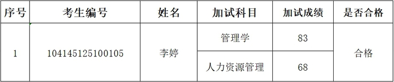 同等学力考生已于4月11日加试两门专业课,加试成绩公示如下,单科成绩均在60分以上为合格,加试成绩不计入复试总成绩。