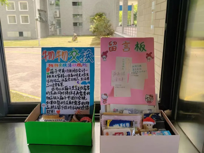 团支部在教学楼开展“物物交换·共享绿意”主题活动。通过收集班级成员闲置的学习用品、生活用品及零食等物资,设置共享交换点,以“取需留余”为核心规则,传递勤俭节约、低碳生活理念,为校园增添绿色活力。