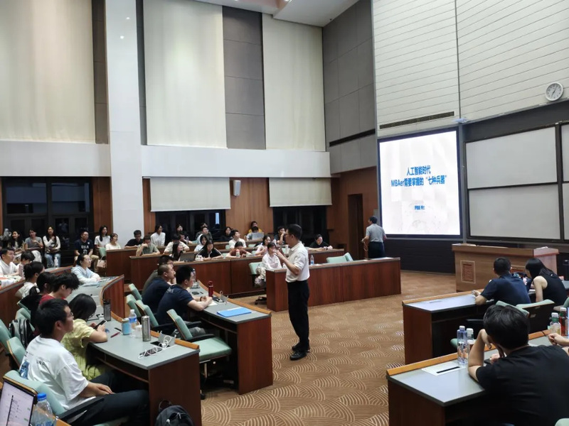 日前,福建品尚征信有限公司副总裁、首席技术官罗智超博士应邀来校,开设题为《人工智能时代MBAer必备的七种武器》的专题课程,工商管理硕士研究生160多人参加学习。