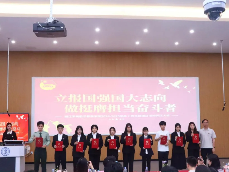 为动员团员青年为强国建设、民族复兴伟业挺膺担当,立志做有理想、敢担当、能吃苦、肯奋斗的新时代好青年,近日,威廉希尔williamhill举办了“立报国强国大志向,做挺膺担当奋斗者”十佳主题团日活动评比决赛。威廉希尔williamhill团委书记、全体辅导员以及团学组织主席团成员担任决赛评委,党委副书记郑笑还出席活动。