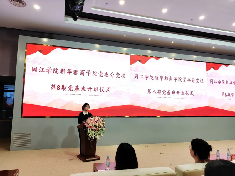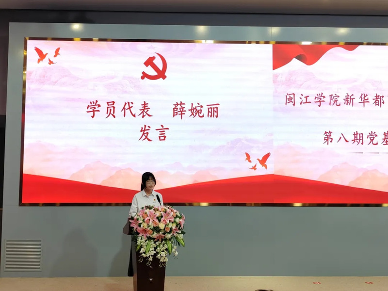 学员代表薛婉丽同学发言,她代表全体学员向党组织表态,将锤炼对党绝对忠诚的政治品格,坚持不懈修身正行绷紧纪律之弦,并以敢为人先的精神投身社会实践,争取早日加入中国共产党。