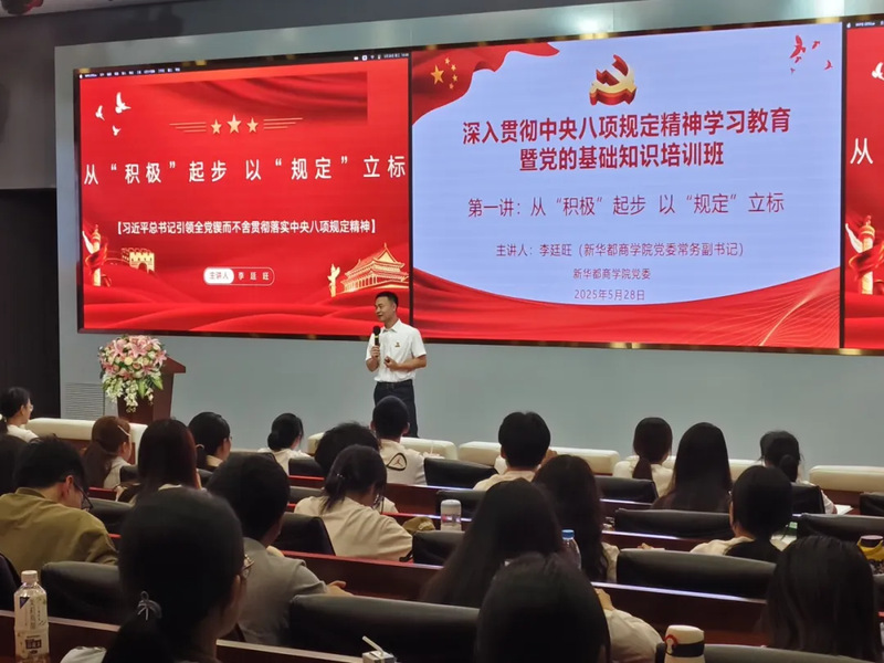 为深入学习贯彻习近平新时代中国特色社会主义思想,加强对党员、入党积极分子的培养和教育,推动深入贯彻中央八项规定精神学习教育走深走实,528日晚,公司党委分党校在C602举办第八期党的基础知识培训班开班仪式暨深入贯彻中央八项规定精神学习教育专题讲座。公司党委常务副书记李廷旺为开班仪式致辞并讲授专题党课,党委副书记郑笑还、公司党委组织员、团委书记、各员工党支部书记、员工骨干及120余名学员出席开班仪式。