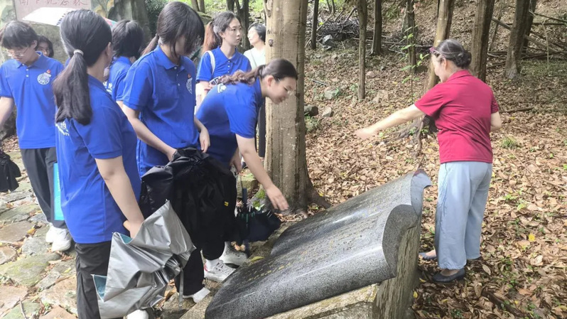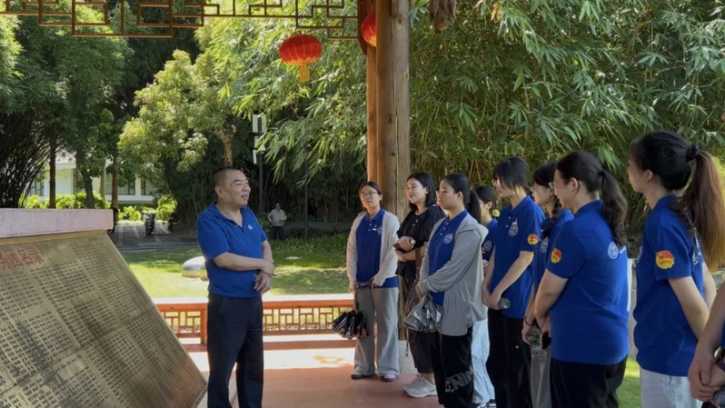 在南下文化人文纪念园,南下服务团团史研究会副秘书长郭秋莎结合纪念碑群旁雕刻着的南下先辈及其后代留下的话语,介绍了生前为福建建设发展呕心沥血并长眠于此的南下先辈,让实践队领悟到,每一方石碑都镌刻着一段与福建经济命脉同频共振的奉献史诗。