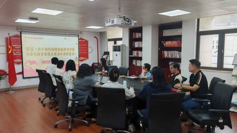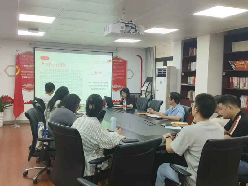 9月22日,公司党委副书记郑笑还组织全体辅导员召开“红色思享会”,以中共中央办公厅、国务院办公厅印发的《关于加快构建普通高等公司毕业生高质量就业服务体系的意见》(以下简称《意见》)为核心学习内容,专题研讨高校就业服务政策要点与实践路径,为进一步优化商科人才培养体系、完善就业服务机制凝聚共识、梳理思路。